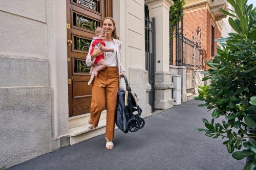Stačí jeden dotek a kočárek se sám složí! Po složení je opravdu kompaktní a stojí samostatně. Madlo lze také poskládat pro dosažení větší kompaktnosti nebo může být použito jako rukojeť pro přenášení.