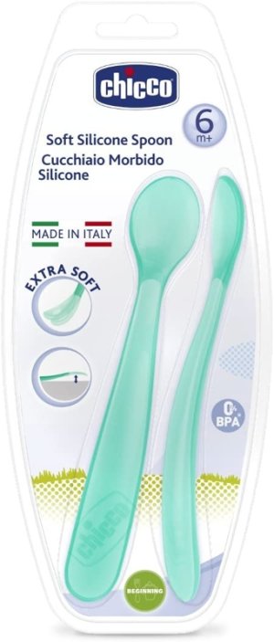 Silikonová lžička Chicco je vhodná pro děti od 6 měsíců. Lžička je vyrobena z materiálu, který je jemný k dětským dásním a nedráždí je během jídla. Má neklouzavé a ergonomické uchopení a její specificky navržený tvar umožňuje krmit děti z různých úhlů. Balení obsahuje 2 ks. Doporučený věk: 6m +