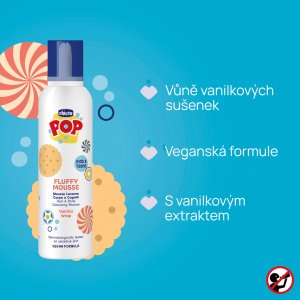 Proměňte každodenní mytí v jemný a voňavý rituál s nadýchanou pěnou na vlasy a tělo Chicco POP Vanilla Wrap.