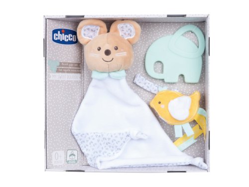 Milá sada ideální jako dárek pro dítě obsahuje vše potřebné pro první chvíle hraní. - Měkká mazlící dečka ve tvaru myšky s chrastítkem a kousátkem je první společník na uklidnění miminka během dne - …