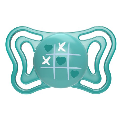 • Extrémně měkká zúžená pata šidítka umožňuje dítěti zavřít ústa a snižuje riziko nerovných zubních oblouků (ortodonticky správné)