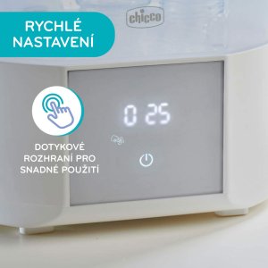 Nadstandardní funkce sušení je kromě toho zárukou odstranění kapek a zbytků vlhkosti a kondenzátů. Dá se jednoduše a intuitivně naprogramovat na dotykovém panelu. Můžete si vybrat sterilizaci nebo sterilizaci a sušení během jednoho programu, nebo zda budete láhve pouze sušit.
