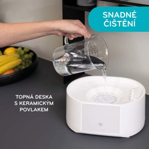 COMPACT umožňuje sterilizování a/nebo sušení malých předmětů jako dudlíků a dudlíků na láhve. Kromě toho ohřívací vložka s keramickým povrchem zabraňuje zčernání v souvislosti s tvorbou vodního kamene. Automaticky upozorní, když je čas na odvápnění a vyčištění výrobku a výměnu filtru.