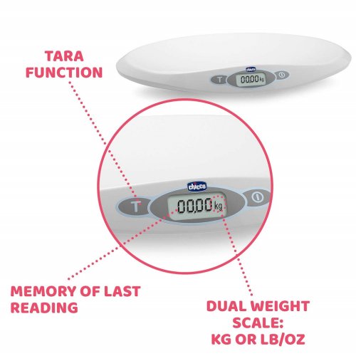 Ergonomicky navržená a kompaktně tvarovaná Chicco Baby Comfort Digitální elektronická váha zváží Vaše dítě už od jeho prvních dnů. Rozsah váhy je od 30g do 20kg.