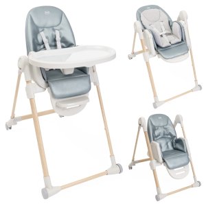Jídelní židle lze výškově nastavit do 9 různých pozic a přizpůsobí se tak výšce, kterou aktuálně potřebujete. Má 4 kolečka díky kterým umíte židli prakticky přesouvat. Opěrka zad lze nastavit do úplného lehu. Opěrka nožiček je rovněž nastavitelná pro naprostý komfort dítěte.