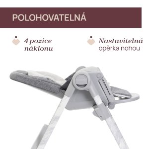 Nastavitelnost Jídelní židle lze výškově nastavit do 9 různých pozic a přizpůsobí se tak výšce, kterou aktuálně potřebujete. Má 4 kolečka díky kterým umíte židli prakticky přesouvat. Opěrka zad lze nastavit do úplného lehu. Opěrka nožiček je rovněž nastavitelná pro naprostý komfort dítěte.