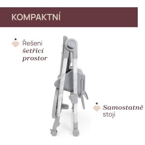 • od 3 let až do 40 kg lze židli nastavit do pozice, ve které dítě může stolovat u jídelního stolu. Stačí odebrat tác, židli nastavit do potřebné výšky a přisunout ke stolu.