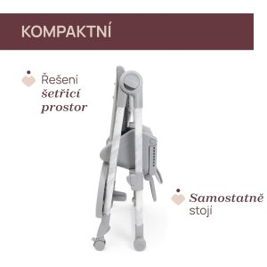 od 3 let až do 40 kg lze židli nastavit do pozice, ve které dítě může stolovat u jídelního stolu. Stačí odebrat tác, židli nastavit do potřebné výšky a přisunout ke stolu.