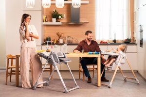 Jídelní židle lze výškově nastavit do 9 různých pozic a přizpůsobí se tak výšce, kterou aktuálně potřebujete. Má 4 kolečka díky kterým umíte židli prakticky přesouvat. Opěrka zad lze nastavit do úplného lehu. Opěrka nožiček je rovněž nastavitelná pro naprostý komfort dítěte.