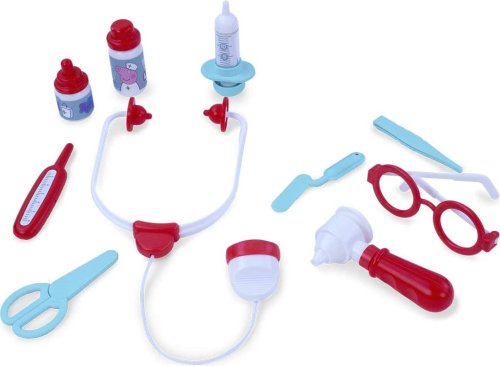 Plastový kufřík pro lékaře či lékařku je plný nezbytných potřeb a pomůcek pro vyšetření každého pacienta. Obsahuje: 10 ks (stetoskop, injekční stříkačka, teploměr, pinzeta, mast, nůžky a další). Hry na profese nikdy neomrzí a navíc v dítěti podporují starostlivost a péči o ostatní. Rozměry kufříku: 34,5 x 26,5 x 9 cm.