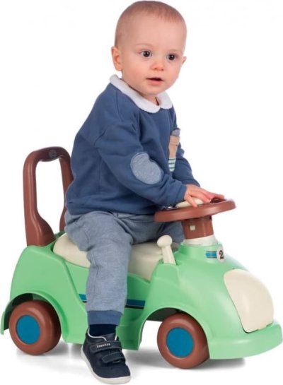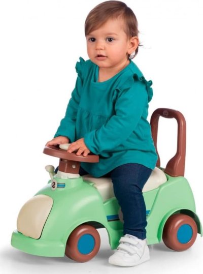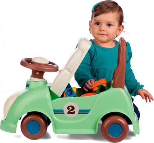 Nejdříve dětem poslouží jako chodítko při jejich prvních krůčcích. Vyrobeno z vysoce kvalitního a odolného plastu. Výstupky zabraňující převrácení dopředu a dozadu. Obsahuje úložný prostor pod sedadlem.