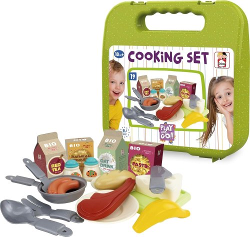Plastový kufřík pro kuchaře nebo kuchařku je plný nezbytných potřeb a pomůcek pro přípravu jídel. Sada obsahuje: 19 ks (pánev, talíře, příbor, jídlo a další). Hry na profese nikdy neomrzí a navíc v dítěti podporují starostlivost a péči o ostatní.