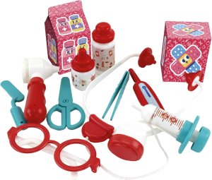 Plastový kufřík pro lékaře či lékařku je plný nezbytných potřeb a pomůcek pro vyšetření každého pacienta. Sada obsahuje: 12 ks (stetoskop, injekční stříkačka, teploměr, pinzeta, mast, nůžky a další). Hry na profese nikdy neomrzí a navíc v dítěti podporují starostlivost a péči o ostatní.