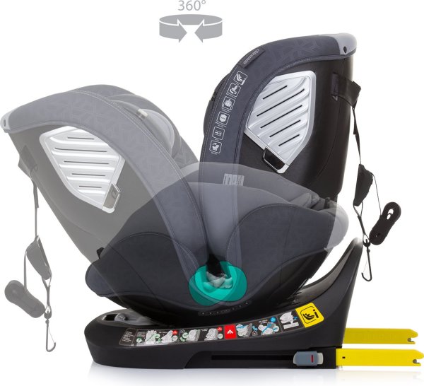 intuitivní a pohodlná instalace pomocí systému ISOFIX = rychlý způsob instalace dětské autosedačky - systém Isofix snižuje síly působící na dítě v případě náhlého zbrždění vozidla, instalace po i proti směru jízdy (autosedačku lze používat proti směru jízdy pro děti s výškou 40-105 cm, věk 0-4 roky, vážící méně než 18kg), 360° otočení na plastové základně, 5ti bodové bezpečnostní pásy s ochranným polstrováním, délkově nastavitelné, nastavitelné opěradlo do 5 poloh, nastavení výšky opěrky hlavy, vynikající ochrana proti bočnímu nárazu, polstrování pro podporu hlavičky a těla dítěte, přídavný 3D polštář pro snížení tlaku na pas a záda dítěte, příjemný potah - lze sejmout a vyprat, využití autosedačky pro menší i větší děti.
