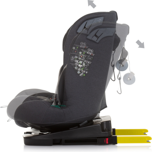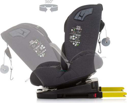 intuitivní a pohodlná instalace pomocí systému ISOFIX = rychlý způsob instalace dětské autosedačky - systém Isofix snižuje síly působící na dítě v případě náhlého zbrždění vozidla, instalace po i proti směru jízdy (autosedačku lze používat proti směru jízdy pro děti s výškou 40-105 cm, věk 0-4 roky, vážící méně než 18kg), 360° otočení na plastové základně, 5ti bodové bezpečnostní pásy s ochranným polstrováním, délkově nastavitelné, nastavitelné opěradlo do 3 úrovní, nastavení výšky opěrky hlavy, vynikající ochrana proti bočnímu nárazu - SPS systém, přídavné polstrování pro podporu hlavičky a těla dítěte, příjemný potah - lze sejmout a vyprat, využití sedačky pro menší i větší děti.