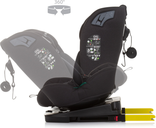 intuitivní a pohodlná instalace pomocí systému ISOFIX = rychlý způsob instalace dětské autosedačky - systém Isofix snižuje síly působící na dítě v případě náhlého zbrždění vozidla, instalace po i proti směru jízdy (autosedačku lze používat proti směru jízdy pro děti s výškou 40-105 cm, věk 0-4 roky, vážící méně než 18kg), 360° otočení na plastové základně, 5ti bodové bezpečnostní pásy s ochranným polstrováním, délkově nastavitelné, nastavitelné opěradlo do 3 úrovní, nastavení výšky opěrky hlavy, vynikající ochrana proti bočnímu nárazu - SPS systém, přídavné polstrování pro podporu hlavičky a těla dítěte, příjemný potah - lze sejmout a vyprat, využití sedačky pro menší i větší děti.