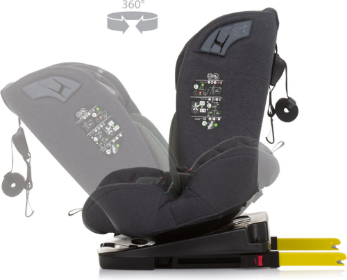intuitivní a pohodlná instalace pomocí systému ISOFIX = rychlý způsob instalace dětské autosedačky - systém Isofix snižuje síly působící na dítě v případě náhlého zbrždění vozidla, instalace po i proti směru jízdy (autosedačku lze používat proti směru jízdy pro děti s výškou 40-105 cm, věk 0-4 roky, vážící méně než 18kg), 360° otočení na plastové základně, 5ti bodové bezpečnostní pásy s ochranným polstrováním, délkově nastavitelné, nastavitelné opěradlo do 3 úrovní, nastavení výšky opěrky hlavy, vynikající ochrana proti bočnímu nárazu - SPS systém, přídavné polstrování pro podporu hlavičky a těla dítěte, příjemný potah - lze sejmout a vyprat, využití sedačky pro menší i větší děti.