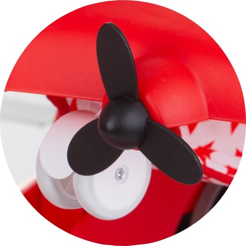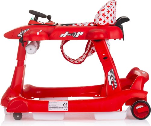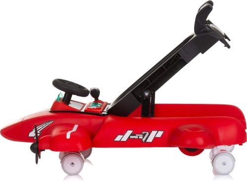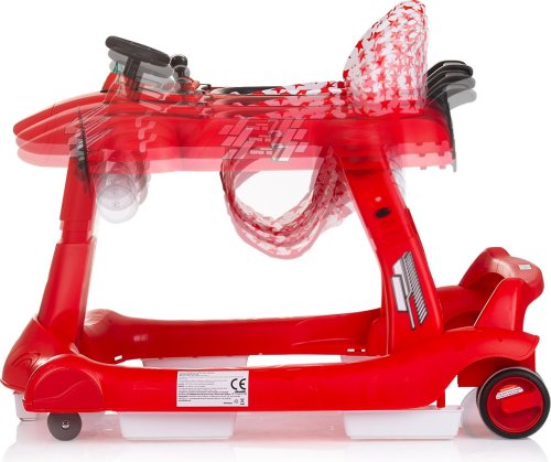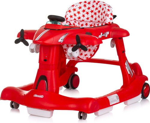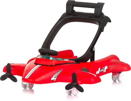 vhodné pro děti od 6 měsíců s hmotností do 12 kg, horní část lze oddělit a přeměnit na tlačící hračku – letadlo, zábavný hrací panel s hračkami a hudbou, vyrobeno z kvalitního a bezpečného plastu, široká základna pro lepší stabilitu, 3 úrovně výšky sedátka pro přizpůsobení růstu dítěte, inovativní regulace rychlosti a blokace zadních kol, dvojitá gumová zadní kola, 5 bezpečnostních zarážek proti převrácení a pádu ze schodů, 4 kolečka (přední otočná o 360°), snadné skládání a kompaktní skladování, jednoduchá montáž, napájení: 2× AA,1,5V baterie (nejsou součástí balení), vyrobeno v souladu s evropskou normou EN 1273.