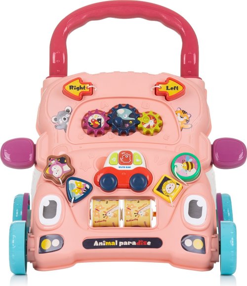 tlačením hračky si batole bude jistější při rozvoji chůze, rovnováhy a koordinace jasné barvy a zvuky různých her podněcují kreativitu dítěte, rozvíjejí sluch a zrak hudební hračka pro děti od 6 měsíců chodítko ke tlačení pro děti, které umí samostatně chodit autíčko můžete oddělit a používat jej jako samostatnou hračku různé druhy her pro delší udržení pozornosti batolat melodie, světla a zvuky pohodlné, lehké a snadno se tlačí pro provoz výrobku jsou třeba 2 ks 1,5V baterií AAА (nejsou součástí balení) rozměry: 41 x 43 x 42 cm