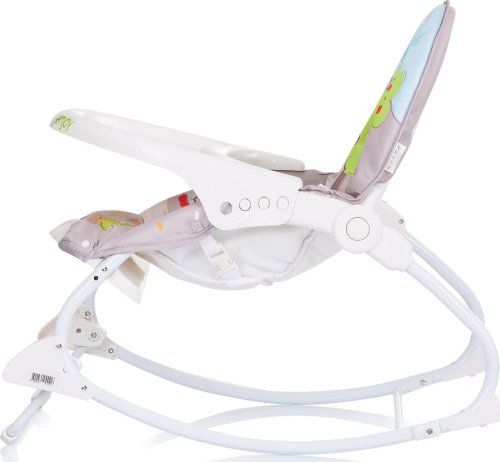 vhodné pro kojence a malé děti s hmotností do 9 kg lze použít jako židli pro děti, které mohou samostatně sedět, s maximální hmotností 18 kg dvě polohy opěradla příjemné melodie v kombinaci s uklidňujícími vibracemi, hrazdička se zavěšenými hračkami odnímatelný plastový pult 3-bodové bezpečnostní pásy houpání lze jednoduše zablokovat