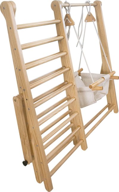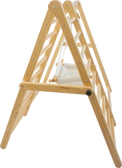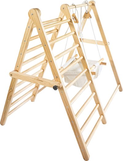 Kompaktní skládací design – pro snadné uskladnění, multifunkční herní vybavení – splňuje různé potřeby dětí, rozvíjí motorické dovednosti a kreativitu dětí, zlepšuje rovnováhu, svalovou sílu a vestibulární systém dítěte, zatímco zajišťuje každodenní pohyb a cvičení, podněcuje děti k aktivitě, odvaze a překonávání nových výzev, vybaveno oboustranným lezeckým žebříkem a houpačkou s látkovým sedátkem, výškově nastavitelná houpačka – vybavená zesílenými lany a dřevěnými háčky, vyrobeno z kvalitních materiálů – pro dlouhodobé používání, stabilní trojúhelníková konstrukce – zajišťuje pevnou oporu, nastavitelné knoflíky – pro snadné skládání, ideální pro 2–3 batolata ke společné hře, hladké povrchy a zaoblené hrany – chrání děti při hraní, produkt je dodáván v nesmontovaném stavu. Montáž je nutná podle přiložených pokynů.