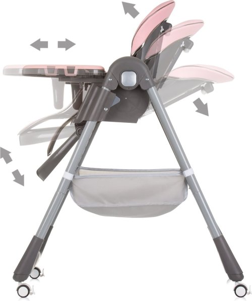 nastavitelná opěrka zad do 4 poloh, výškově nastavitelné sedadlo do 7 poloh, nastavitelná opěrka nohou do 2 poloh, široký a pohodlný sedák z EKO kůže, 5bodové bezpečnostní pásy s měkkými ramenními polštářky, dvojitý podnos na potraviny - horní podnos je odnímatelný pro snadné čištění, základní podnos na potraviny je vybaven ochrannou T-tyčí, posouvatelný podnos dopředu a dozadu do 4 poloh, hrazdička s hračkami pro zábavu, 4 kolečka pro snadné přemisťování, úložný koš na hračky a příslušenství, kompaktní pro skladování, rozměry židličky: 68 x 51 x 110 cm, rozměry složené židličky: 30 x 51 x 95 cm.