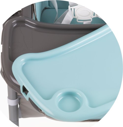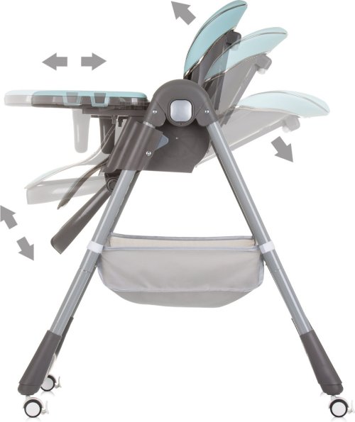 nastavitelná opěrka zad do 4 poloh, výškově nastavitelné sedadlo do 7 poloh, nastavitelná opěrka nohou do 2 poloh, široký a pohodlný sedák z EKO kůže, 5bodové bezpečnostní pásy s měkkými ramenními polštářky, dvojitý podnos na potraviny - horní podnos je odnímatelný pro snadné čištění, základní podnos na potraviny je vybaven ochrannou T-tyčí, posouvatelný podnos dopředu a dozadu do 4 poloh, hrazdička s hračkami pro zábavu, 4 kolečka pro snadné přemisťování, úložný koš na hračky a příslušenství, kompaktní pro skladování, rozměry židličky: 68 x 51 x 110 cm, rozměry složené židličky: 30 x 51 x 95 cm.