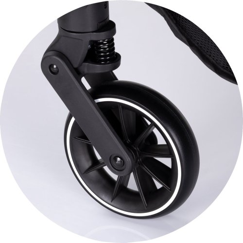 lehký hliníkový rám, 3D automatické skládání jednou rukou, nastavitelné a polohovatelné opěradlo, odnímatelné přední madlo s potahem z eko kůže, 5-bodový bezpečnostní pás s měkkýmiramenním polstrováním nastavitelná stříška s průhledovým okénkem a sluneční clonou, nastavitelná opěrka nohou, síťovaná část na zadní straně stříšky, voděodolná látka na stříšce, úložný koš, kola jsou snadno odnímatelná s odpružením, brzda na zadních kolech, polstrovaný nánožník, taška na příslušenství - praktické kapsy a přebalovací podložka, držák na nápoj.
