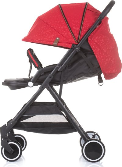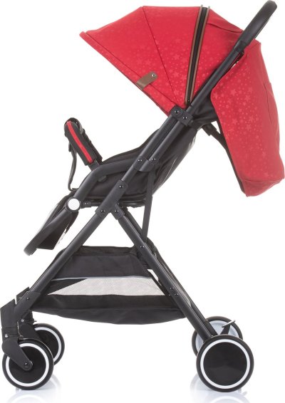 lehký klasický rám snadné a kompaktní skládání jednou rukou odpružená kola zadní kola s nožní brzdou 5ti bodové bezpečnostní pásy s polstrováním nastavitelná opěrka zad do několika poloh nastavitelná opěrka nohou nastavitelná velká stříška s průhledem, sluneční clonou a kapsou na příslušenství odnímatelné dětské madlo pohodlná rukojeť potažená vysoce kvalitním materiálem prostorný úložný koš