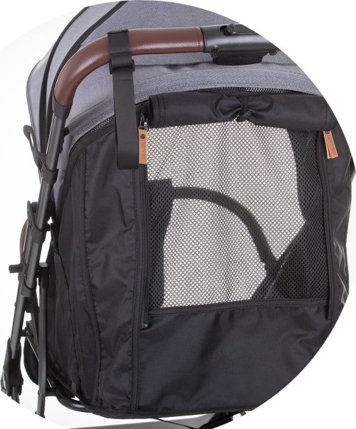 klasický pevný rám snadné a kompaktní skládání jednou rukou odpružená rychloupínací kola zadní kola s článkovou brzdou 5ti bodové bezpečnostní pásy s polstrováním nastavitelná opěrka zad nastavitelná opěrka nohou nastavitelná a prodloužitelná stříška s průhledem, sluneční clonou a kapsou na příslušenství síťování v zadní části nánožník moskytiéra odnímatelné dětské madlo potažené ekokůží pohodlná rukojeť potažená vysoce kvalitní ručně prošívanou ekokůží bezpečnostní pásek na rukojeti prostorný úložný koš
