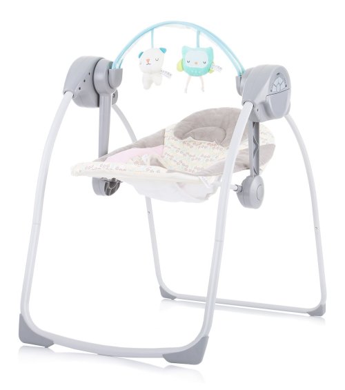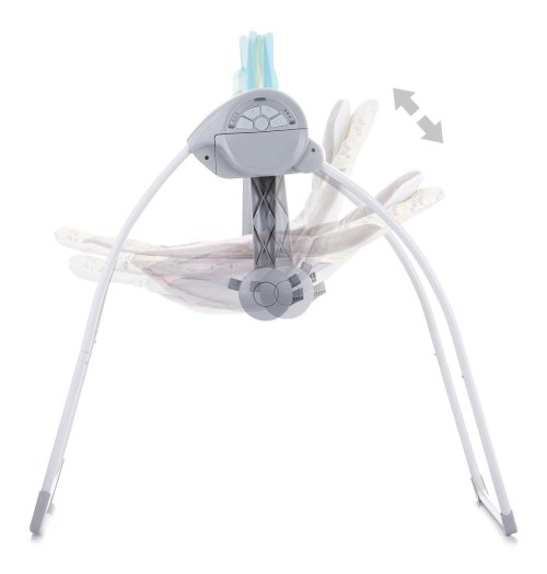 Pevný a stabilní kovový rám, snadno se přemisťuje, 3 rychlosti houpání, časovač houpání (možnost zvolit 30, 45 nebo 60 min), 2 úrovňové nastavení opěradla pro správnou polohu páteře, měkké a odnímatelné polstrování (lze prát ručně), polštářek pro podepření hlavičky dítěte, bezpečnostní pásy, hrazdička s hračkami, rozvíjí představivost a motoriku, melode a zvuky přírody, napájení 2 způsoby: přiloženým napájecím zdrojem nebo 4x AA,1,5 baterie (baterie nejsou součástí výrobku),