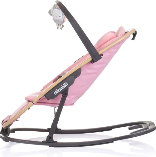 vhodné pro miminka a malé děti, které ještě neumí samostatně sedět, nastavitelná opěrka zad, hrazdička se zavěšenými hračkami, speciální měkká látka pro maximální pohodlí, přídavná měkká opěrka hlavy pro miminko, 3-bodový bezpečnostní pás, houpací funkce, snadné a kompaktní složení, rozměry výrobku: 43 x 68 x 67 cm.