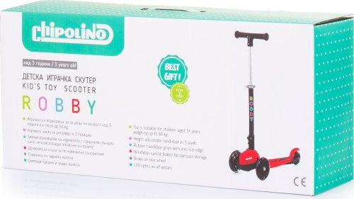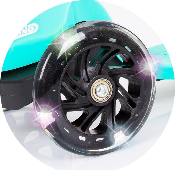 Stabilní koloběžka Robby s barevnými LED světly.