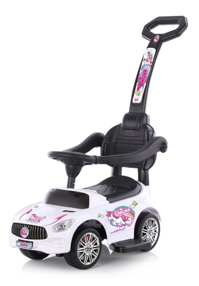 Bílé odrážedlo Jednorožec je multifunkční výrobek pro děti se 2 různými způsoby použití podle zdatnosti dítěte.