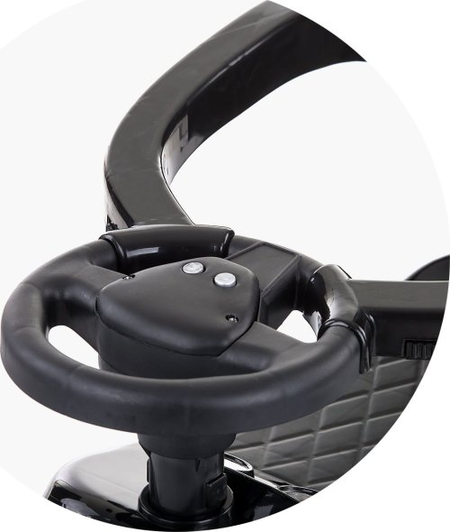 multifunkční výrobek se 2 různými způsoby použití - rodič tlačí dítě nebo dítě jede v autíčku samo stimuluje rozvoj motoriky a koordinace dítěte pohodlná rukojeť pro rodičovskou kontrolu s tlačítkem pro snadné vyjmutí bezpečnostní madla, které chrání dítě před pádem; stupačky, které lze v případě potřeby jednoduše odstranit pohodlné a prostorné sedadlo velké, pohodlné opěradlo úložný prostor pod sedadlem zábavné melodie na volantu - pro provoz jsou potřeba 2 ks baterií AA,1,5V (nejsou součástí balení)
