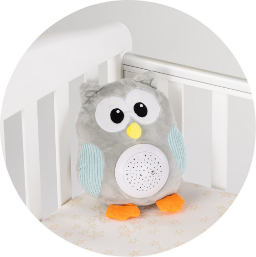 Vestavěná hudební skříňka přehrává jemné melodie, které děti uklidňují a uspávají. Stačí jedno stisknutí tlačítka a projektor se začne otáčet, rozzáří pokoj hvězdnou oblohou promítanou z víka skříňky. Tlačítko pro světlo aktivuje barevnou hvězdnou projekci, která se v kombinaci s pohybem projektoru postará o ještě působivější atmosféru. Hudební skříňku lze vyjmout, takže plyšovou část lze prát ručně při teplotě do 30 °C. Pro provoz jsou potřeba 3ks baterie typu AAA (nejsou součástí balení).