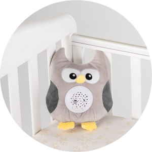 Každá hračka má vestavěnou hudební skříňku s 10 ukolébavkami a 5 druhy bílého šumu, které napodobují známé zvuky z dělohy i přírody. Jedním tlačítkem se aktivuje barevný LED projektor s různými kombinacemi červené, zelené a modré barvy, které se plynule střídají a dítě uklidňují. K dispozici jsou 3 úrovně hlasitosti a jednoduché ovládání pomocí intuitivních tlačítek. Hudební skříňku lze vyjmout, takže plyšovou část lze prát ručně při 30 °C. Pro provoz jsou potřeba 3ks baterie typu AAA (nejsou součástí balení).