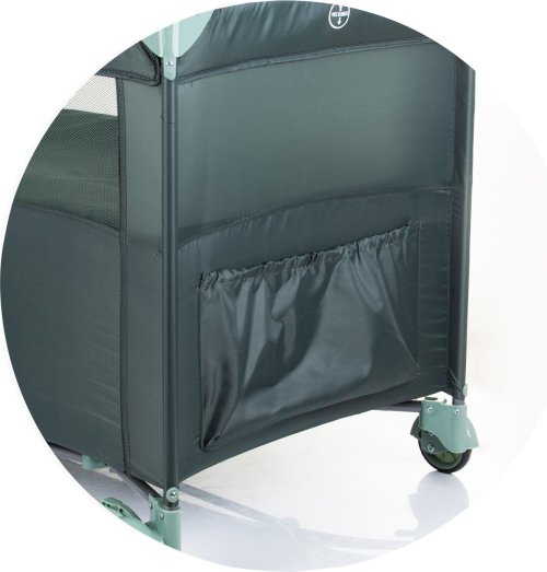 postýlka je vhodná pro novorozence a děti s hmotností do 15 kg, atraktivní zvířecí motiv, sklopná strana – 2 různé úrovně, na jedné krátké straně kapsa na příslušenství, vstup na zip na jedné straně postýlky, dvě kolečka s brzdou pro snadný přesun, snadno se složí a rozloží, taška na přenášení a skladování.