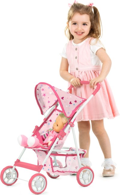 super lehký a pohodlný kočárek pro panenky, nastavitelná stříška, úložný prostor - košík na drobnosti, snadno a rychle se složí do kompaktní velikosti, zlepšuje fyzickou koordinaci dítěte, rozvíjí v dětech péči o druhé, starostlivost a ohleduplnost, čistěte jemným suchým nebo navlhčeným hadříkem, rozměry kočárku: 52 x 33 x 56 cm.