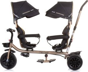 Dětská tříkolka pro dvojčata značky CHIPOLINO je výborným dopravním prostředkem pro nové zážitky. Tříkolka je vhodná pro dvě děti, každé s maximální hmotností 20kg. Vlastnosti: