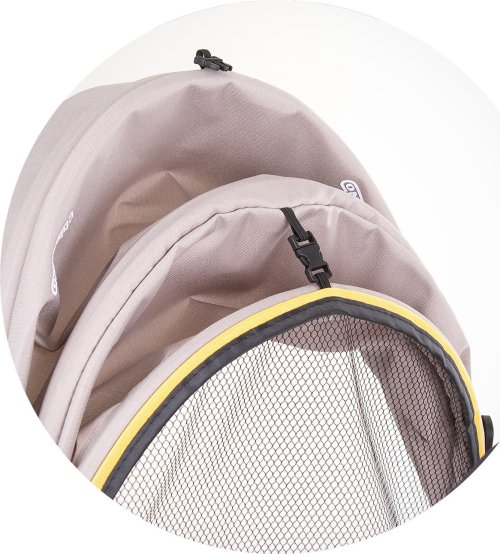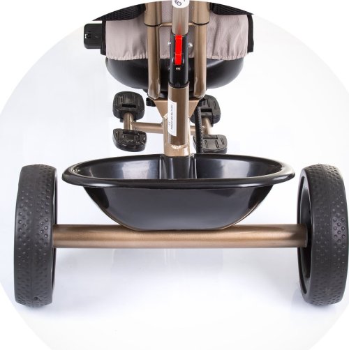multifunkční výrobek se 2 různými způsoby použití - rodič děti tlačí nebo dítě vpředu tříkolku pohání pomocí pedálů dvě polohy předního sedadla - režim po směru jízdy a režim, kdy děti sedí čelem k sobě obě sedadla se otáčí o 360 stupňů obě sedadla jsou vybavena bezpečnostními madly pohodlná rukojeť pro rodiče dvě skládací a pohyblivé opěrky nohou blatníky na předním kole dvě velké skládací stříšky se slunečními clonami dvě široká a pohodlná sedadla s měkkým textilním potahem a bezpečnostními pásy úložné koše vpředu a vzadu brzdové pedály na zadních kolech kryt kola na předním kole, který zabraňuje zachycení dětských nohou