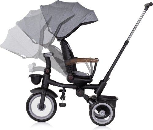 multifunkční výrobek 2v1 se rychle změní v tříkolku pro samostatně jezdící děti, tříkolku může pohánět dítě nebo ji tlačí dospělý pomocí rukojeti, vysoce kvalitní gumová kola s výbornou odolností proti opotřebení, sedadlo se otáčí o 360° - umožňuje dvě polohy (po i proti směru jízdy), výškově nastavitelná rukojeť do 3 poloh, opěradlo lze sklopit až do lehu v obou směrech, sedadlo je vybaveno bezpečnostním nárazníkem s potahem z eko kůže, který lze odejmout, opěrka nohou – pedály lze odejmout z předního kola a nainstalovat na opěrku nohou, nastavitelná stříška se sluneční clonou a síťkou, velké sedadlo s měkkým a pohodlným textilním potahem, 5bodový bezpečnostní pás s měkkými ramenními polštářky, úložný koš vpředu i vzadu, blatník na předním kole, brzdové pedály na zadních kolech, průhledný kryt předního kola, který zabraňuje zachycení dětských nohou, řídítka se světlem (pro provoz jsou potřeba 2 ks baterií typu AAA,1,5 V, které nejsou součástí balení, sklopné opěradlo pro kompaktní skladování, skládací zadní část tříkolky – pro snadné uskladnění.