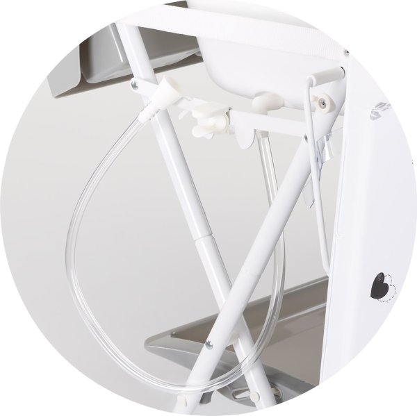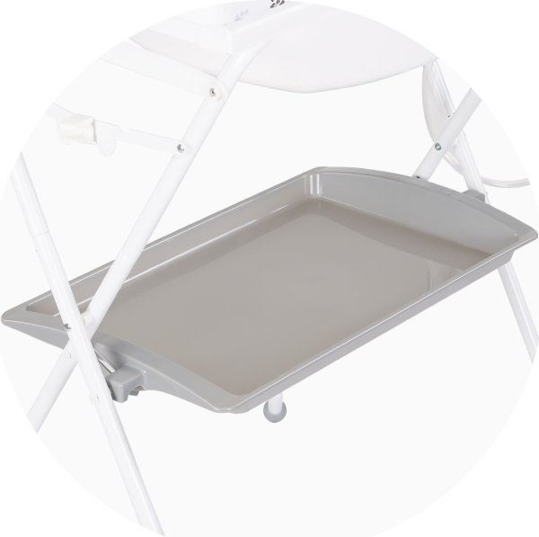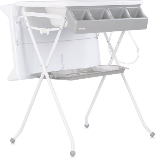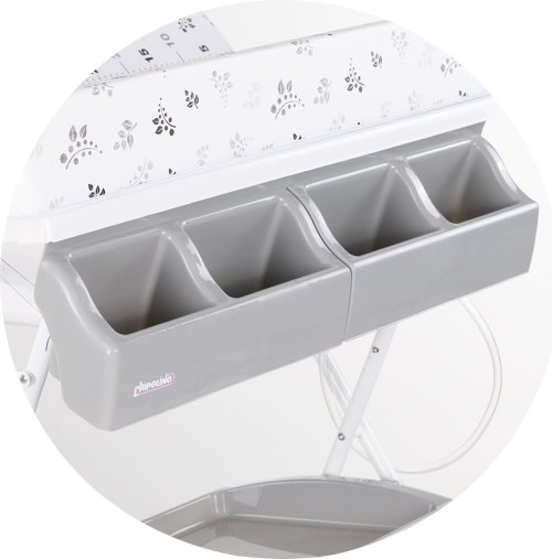 výrobek lze použít jako přebalovací pult a po sejmutí přebalovací podložky jej můžete použít jako vaničku, skládací stojan na vaničku pro pohodlí rodičů, přihrádka na příslušenství, kterou lze použít k uskladnění potřebných věcí, přebalovací podložku lze odklopit na stranu, hadice a zátka pro snadné vypuštění vody, rozměry: 80 × 61 × 103 cm.