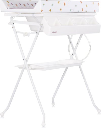 výrobek lze použít jako přebalovací pult a po sejmutí přebalovací podložky jej můžete použít jako vaničku, skládací stojan na vaničku pro pohodlí rodičů, přihrádka na příslušenství, kterou lze použít k uskladnění potřebných věcí, přebalovací podložku lze odklopit na stranu, hadice a zátka pro snadné vypuštění vody, rozměry: 80 × 61 × 103 cm.