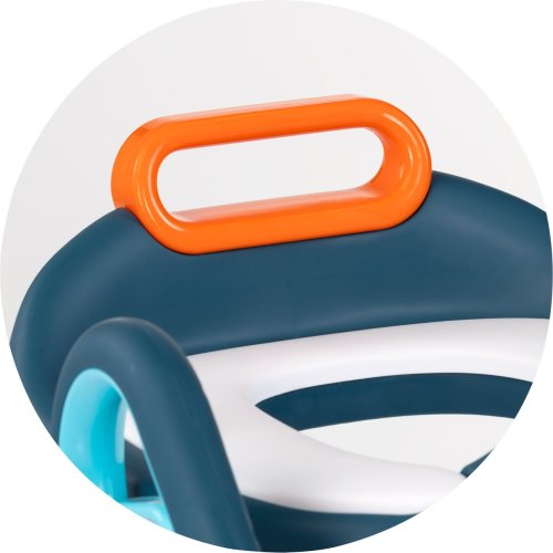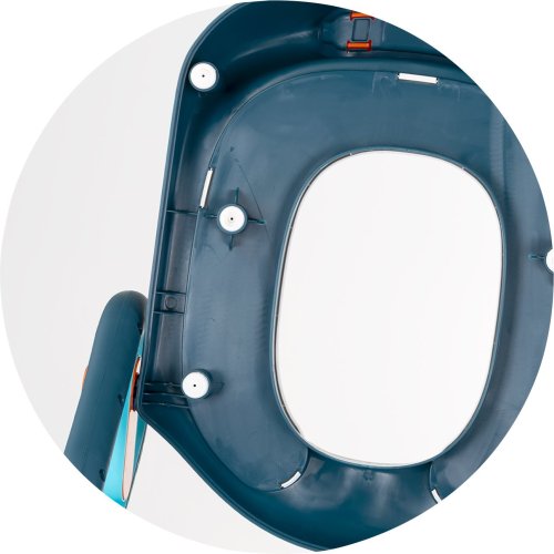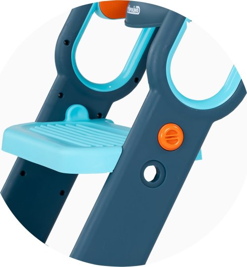 inovativní design, vhodné pro všechny typy toalet, stabilní a bezpečné, snadné používání a čištění, výškově nastavitelná opěrka nohou - pohodlná pro dětské nožky, pohodlné a měkké sedátko, široký protiskluzový schůdek, protiskluzové nožky, madla, kompaktní velikost při skladování, rozměry: 40 x 39 x 66 cm.