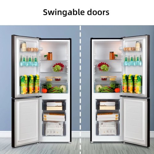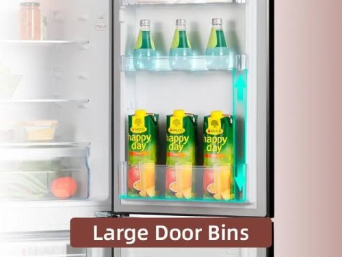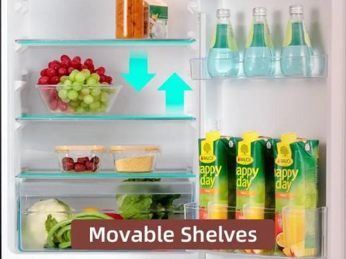 Praktické uložení potravin umožňují 3 nastavitelné police a jeden úložný box v chladicí části a tři šuplíky v mrazáku. Ve dveřích najdete poličku na nápoje a dvě horní poličky na drobnější potraviny. Dveře je možné nastavit pro levé nebo pravé otevírání.