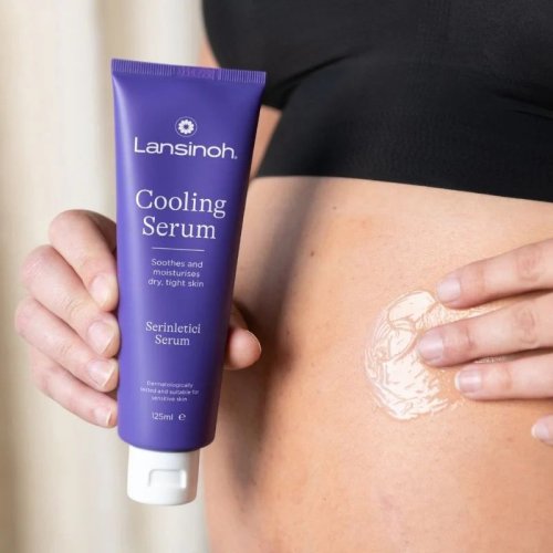 Chladivé sérum pro těhotenské bříško. Zklidňuje a hydratuje suchou, napínající a svědivou pokožku.