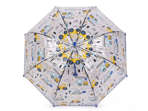 Dětský vystřelovací deštník s barevným potiskem autíček chlapce nadchne, protože díky průhlednému potahu uvidí ven. Navíc je dost hluboký, budou mít pocit, že jsou celí schovaní. Deštník je vystřelovací, má klasickou tyč zakončenou pevnou rukojetí. Konstrukce deštníku je z pružných lamel a tvoří osm polí. Konce lamel jsou zakončené plastovými kuličkami - zmenšují riziko poranění. Deštník má klasické zapínání na patentku. Hloubka deštníku je 30 cm.