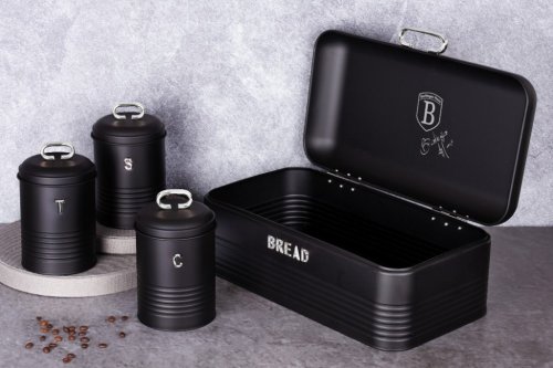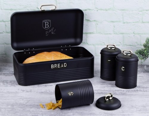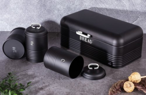 Chlebovka a dóza na potraviny sada 4 ks Matte Black Collection BH-6754