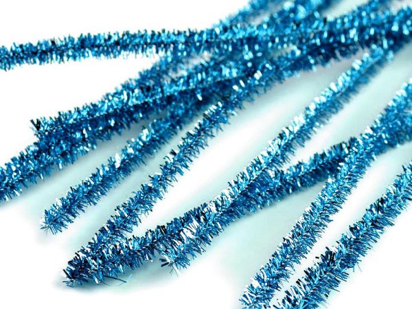 Chlupaté drátky na tvoření lurexové Ø6 mm délka 30 cm - modrá tyrkys (10 ks)